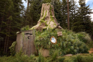 The moss-covered oasis features a studio layout in a live-in tree stump with two beds and one bathroom, providing a cozy and secluded spot to enjoy the brisk autumn days and starry nights just like a true ogre. Despite warning signs like “Danger” and “Beware Ogre,” guests are welcome to consider it Shrek’s unique way of inviting them home.